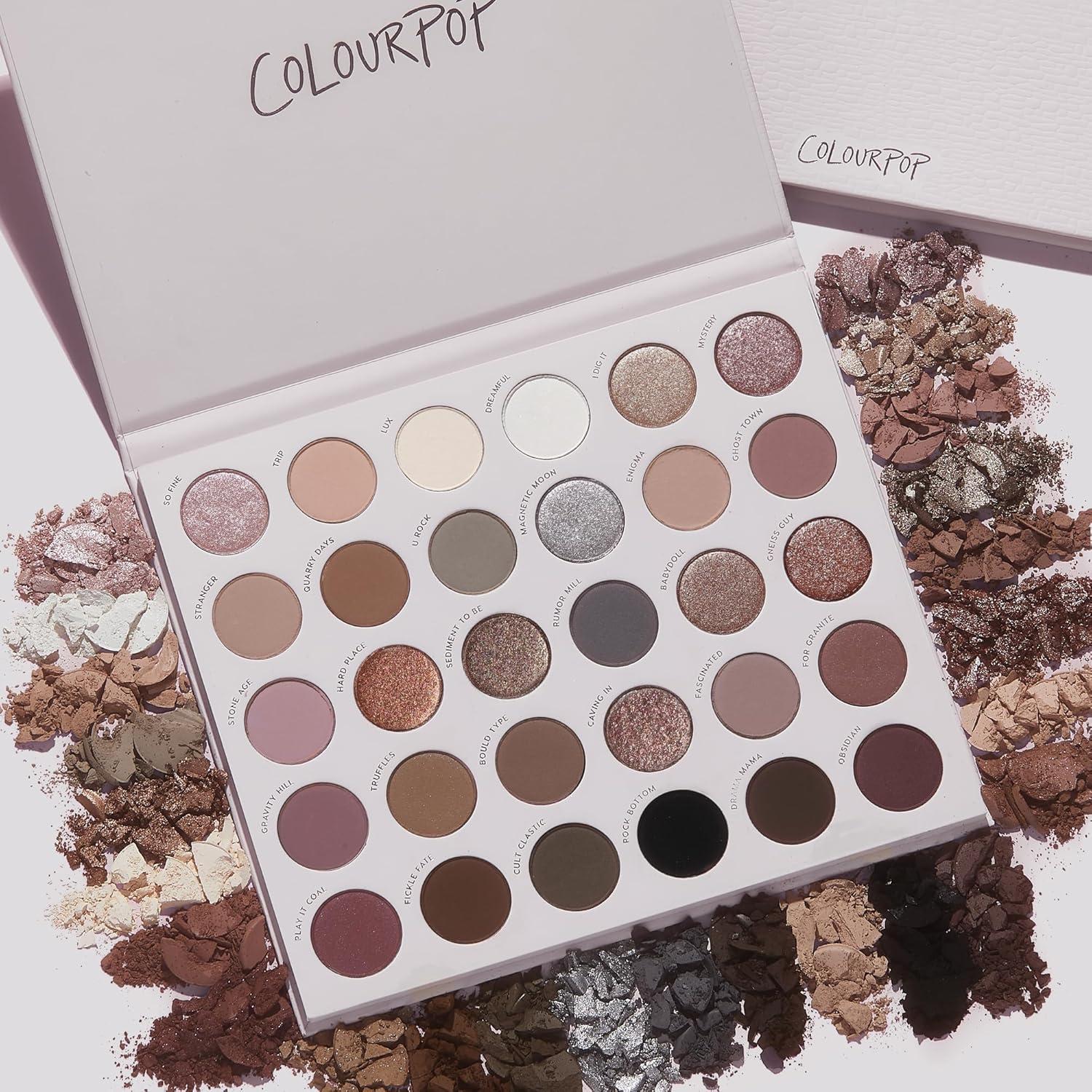 ColourPop Eyeshadow Icons Bundle – Stone Cold Fox Palette (30 Pan Cool Tone), Smoke N Roses Palette (Rosey & Smokey Hues), Long-Wearing Matte & Metallic Finishes